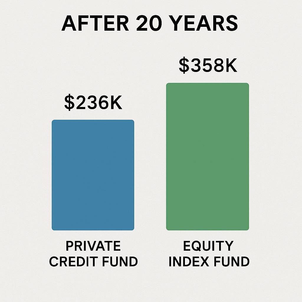 Even with the same headline return, the structure and tax treatment of an investment can create a massive difference over 20 years.